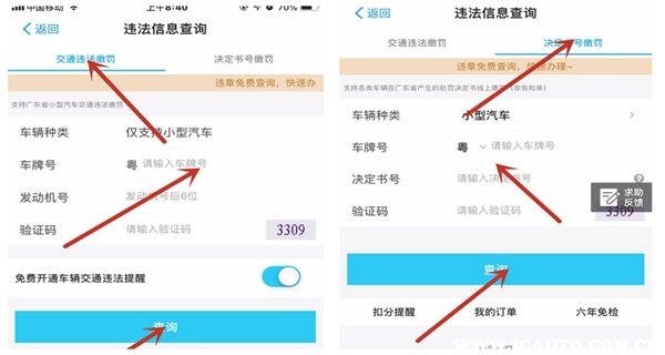3、这里可以选择交通违法缴罚,输入车牌号码、发动机号码等信息,然后点击查询,如果能查到的话,就根据提示操作,直至完成罚款缴纳。如果查询不到,可以尝试右边的“决定书号缴罚”,将处罚决定书15位编号输入,如果能缴纳就根据提示操作,不能的话就只能去交警大队了。