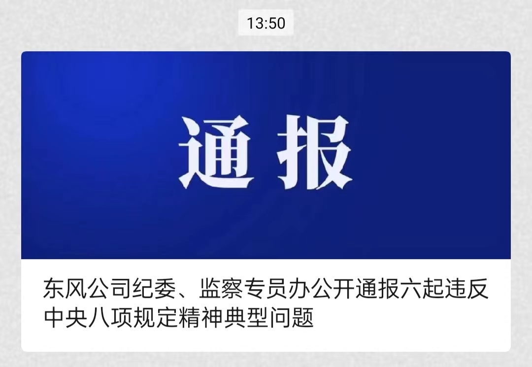 6月3日,东风汽车集团纪委官方账号“廉洁东风”发布,2024年端午佳节将至,为坚守节点,筑牢中央八项规定堤坝,净化节日风气,东风公司纪委、监察专员办对6起违反中央八项规定精神典型问题进行公开通报。具体如下:一、东风日产乘用车公司制造总部车辆工程技术部原副部长郑镇伟违规收受礼品、礼金,违规接受管理和服务对象安排的宴请问题。2018年至2022年,郑镇伟担任东风日产乘用车公司制造总部车辆工程技术部副部...