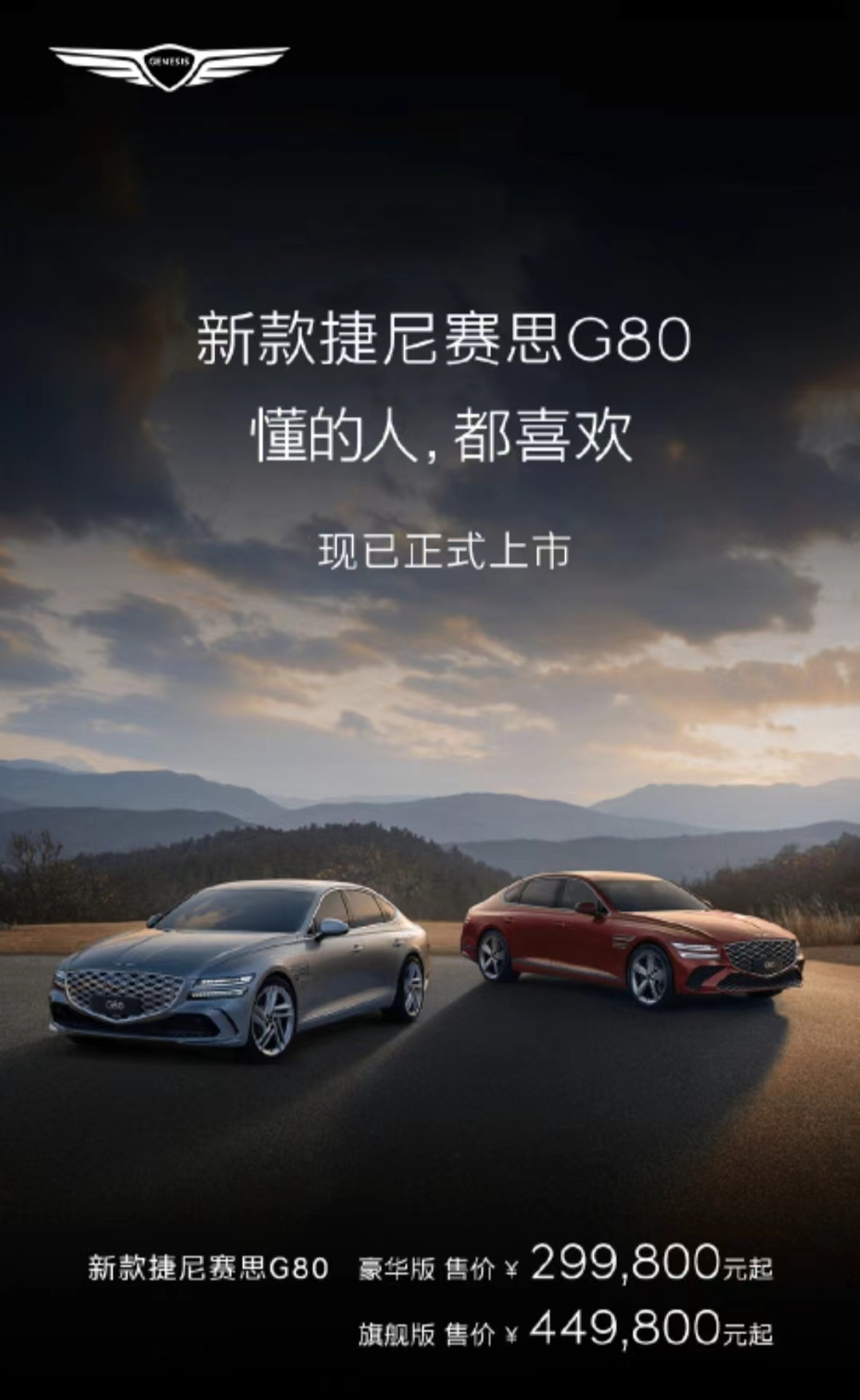在2024粤港澳大湾区车展开幕日,捷尼赛思宣布新款捷尼赛思G80正式上市。新车共推出豪华版和旗舰版2款车型,售价区间为29.98-44.98万元。作为对比,目前国内在售的2023款捷尼赛思G80售价区间为36.38万-45.78万元,相比之下,新车售价有所下调。本次新款捷尼赛思G80为该车中期改款车型,主要针对外观和内饰部分进行升级调整,动力上依然搭载2.5T涡轮增压发动机。具体来看,外观方面,新...