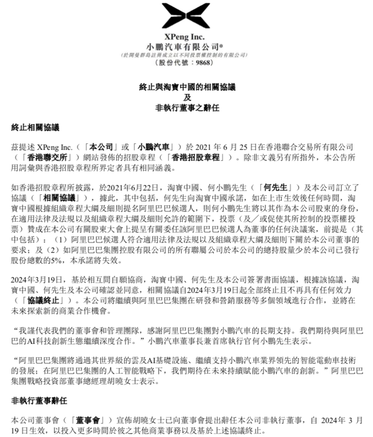 当地时间3月20日,美国证券交易委员会文件显示,阿里巴巴附属公司淘宝中国控股有限公司计划出售小鹏汽车美国存托股票(ADS),合计3300万份,总价值约3.14亿美元(约合人民币22.61亿元),成交价在每股9.6美元到9.75美元之间,低于市场价。3月19日晚间,小鹏汽车在港交所公告,基于相互间自愿协商,淘宝中国、何小鹏及公司签署书面协议,根据该协议,淘宝中国、何小鹏及公司确认并同意,相关协议自2...
