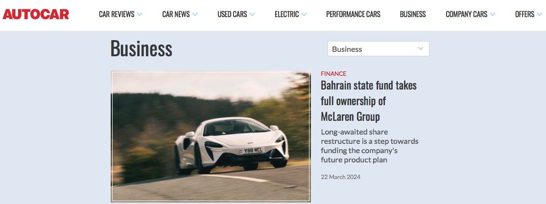 据外媒报道,英国超级跑车制造商迈凯伦(McLaren)已被巴林主权财富基金控股公司(MumtalakatHoldingCompany)全资控股,持股比例由原先的60%提升至100%。不过截至发稿前,官方暂未公布任何注资细节。据了解,迈凯伦是英国一家超级跑车制造商,旗下业务分为超级跑车制造与赛车业务,最初是由冠军车手布鲁斯·迈凯伦(BruceMcLaren)于1960年创立,名为迈凯伦汽车有限公司,...