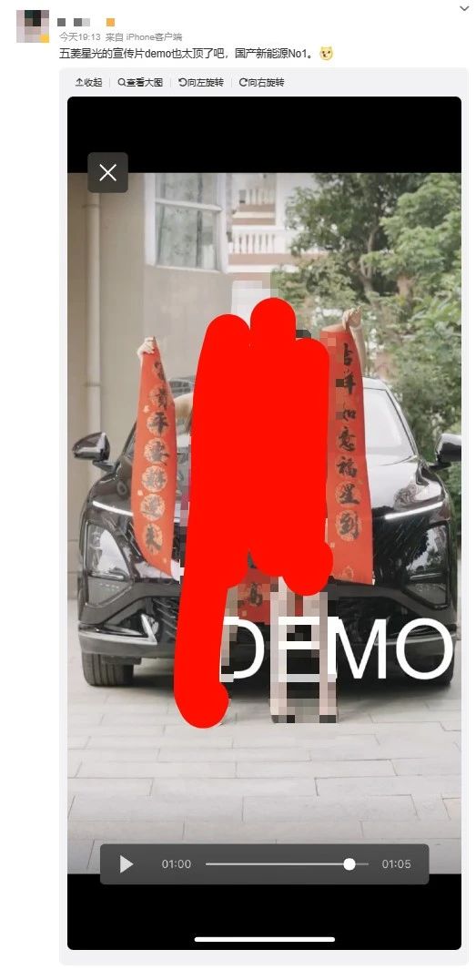 1月16日,网上传出一段“五菱星光DEMO”视频,视频开头貌似要介绍车,但很快,视频画面出现了两名穿着性感的年轻女子且动作挑逗,随后该视频在网上引发网友热议。目前相关视频在社交媒体上已搜索不到,只剩下部分截图。针对上述网传消息,上汽通用五菱品牌事业部副总经理周钘在其个人微博上回应:“已经报警了”。随后,当天晚间,五菱汽车官方也对此事做出回应。五菱汽车表示:“在网络上出现的‘五菱星光相关DEMO视频...