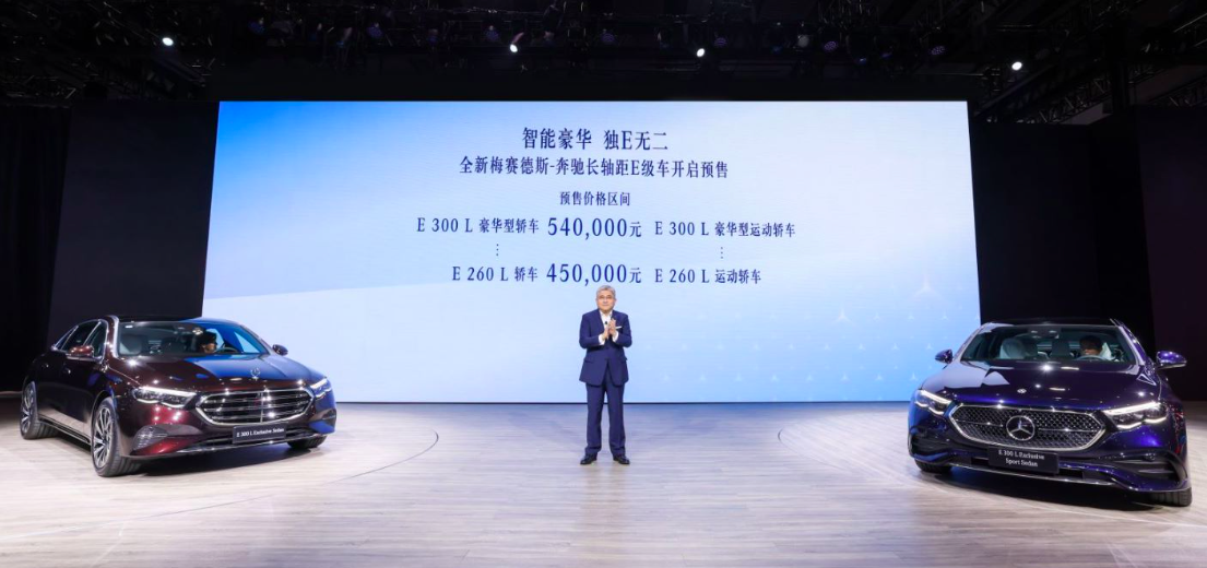 在2023广州车展上,全新一代奔驰E级长轴距版车型(V214)亮相并开启预售,预售价区间为45.00-54.00万元,其中,E260L轿车、E260L运动轿车预售价为45万元起,E300L豪华轿车、E300L豪华运动轿车预售价为54万元。外观方面,新车“双前脸”设计,前脸采用类似于梅赛德斯-EQ家族的设计风格,但保留了镀铬中网边缘和星徽格栅的设计,大灯组则采用奔驰经典的“花生灯”造型。细分来看,全...