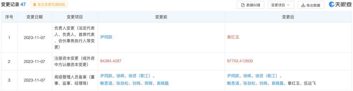 天眼查信息显示,奇瑞新能源汽车股份有限公司发生工商变更,注册资本由9亿人民币增至约10.3亿人民币。同时,奇瑞汽车董事长尹同跃卸任该公司法定代表人、董事长,由鲍思语接任董事长,章红玉任法定代表人、总经理。目前,尹同跃任该公司董事。公开资料显示,奇瑞新能源汽车股份有限公司成立于2010年4月,是一家以从事汽车制造业为主的企业。该公司由奇瑞汽车股份有限公司、芜湖市建设投资有限公司、芜湖瑞健投资咨询有限...