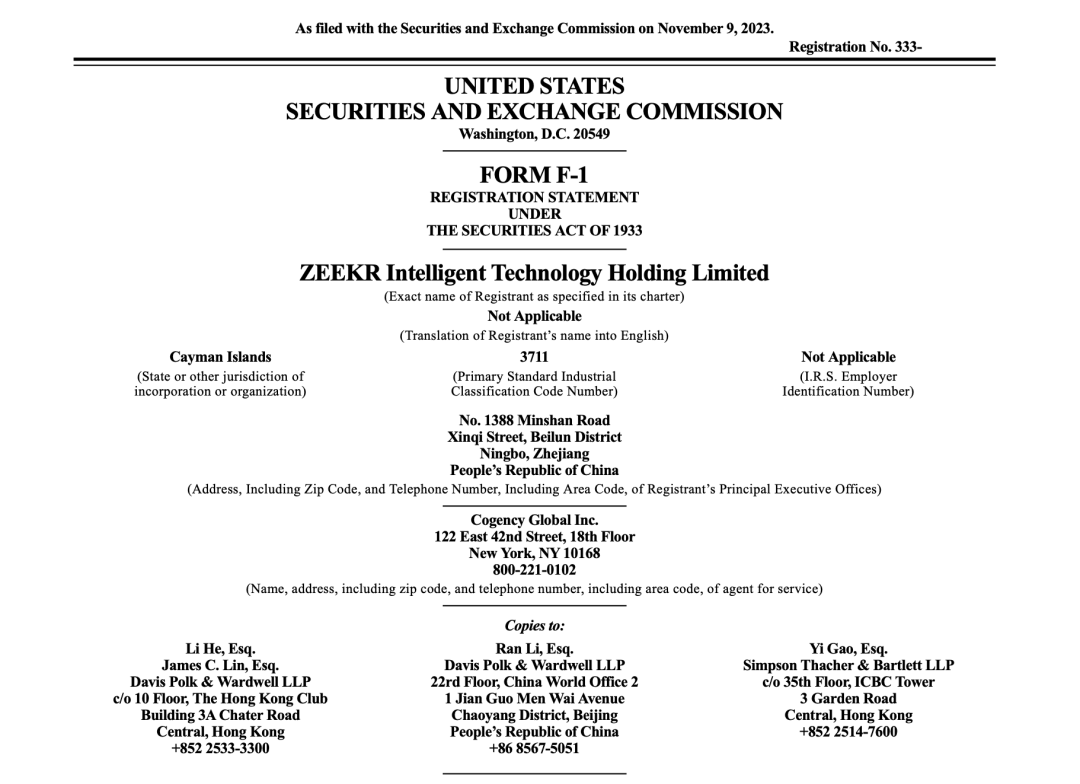 11月10日,吉利控股集团旗下高端电动车品牌极氪汽车向美国证券交易委员会(SEC)公开提交IPO招股书。招股书显示,极氪汽车计划在纽约证券交易所挂牌上市,股票代码为“ZK”。这也意味着,如无意外,极氪汽车将成为继“蔚小理”后,第四家赴美上市的新能源车企。极氪汽车在招股书中表示,自成立以来,吉利汽车一直是控股股东,并将在本次发行完成后继续控制极氪。招股书显示,在本次发行前,吉利汽车持股54.7%;吉...