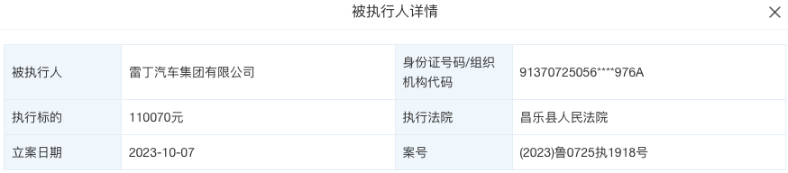 《汽车行业关注》从天眼查信息了解,10月7日,雷丁汽车集团有限公司(下称“雷丁汽车”)新增4则被执行人信息,执行标的2892万余元,执行法院均为昌乐县人民法院。资料显示,雷丁汽车集团有限公司成立于2012年10月,注册资本1亿人民币,法定代表人为王德金,是一家以从事汽车制造业为主的企业,由比德文控股集团有限公司全资持股。天眼查风险信息显示,雷丁汽车集团有限公司存在20多条被执行人信息,被执行总金额...