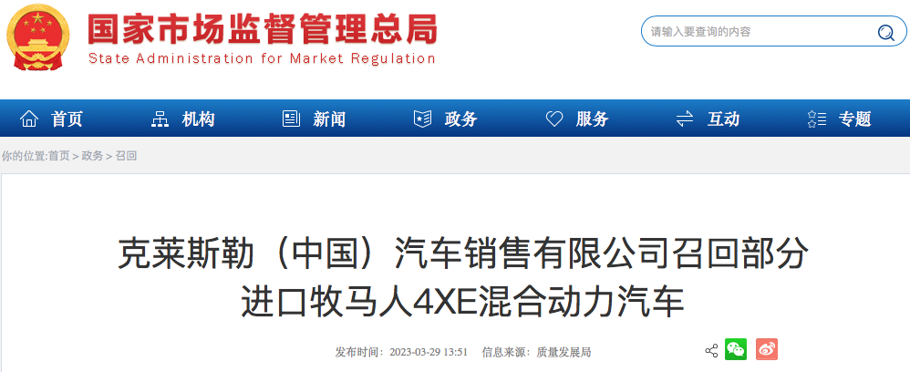 3月29日,国家市场监督管理总局发布最新召回公告。公告显示,克莱斯勒(中国)汽车销售有限公司根据《缺陷汽车产品召回管理条例》和《缺陷汽车产品召回管理条例实施办法》的要求,向国家市场监督管理总局备案了召回计划。决定自即日起,召回部分进口2.0T4xeRubicon四门版牧马人、2.0T4xeSahara四门版牧马人混合动力汽车,共计1604辆。具体如下:一、2022年1月14日至2022年5月18日...