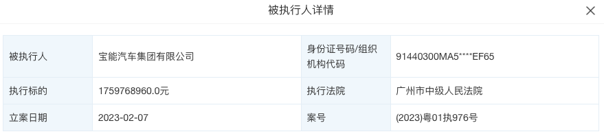 2月7日,宝能新增一条被执行人信息。天眼查信息显示,深圳市宝能投资集团有限公司及其旗下的宝能汽车集团有限公司、深圳前海锐致投资有限公司等公司以及姚振华新增被执行人信息,执行标的17.59亿余元,执行法院为广东省广州市中级人民法院。据了解,事件的起因是该案件原告广东华兴银行股份有限公司起诉姚振华及上述公司相关借款合同纠纷一案。判决书显示,宝能汽车要在判决发生法律效力之日起十日内,向广东华兴银行归还借...