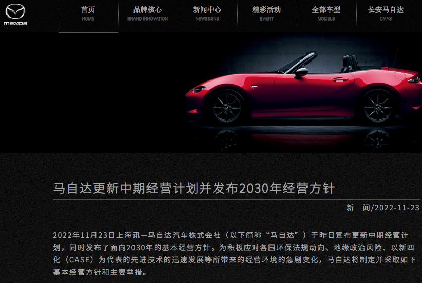 11月22日,日本车企马自达公布一项高达1.5万亿日元(106亿美元)的支出计划,马自达计划到2030年投入1.5万亿日元(106亿美元)以此实现电气化转型并扩大电动车产量。马自达社长丸本明(AkiraMarumoto)称,电动车需求比之前预想的更加热烈。按照战略计划,马自达将与中国电池企业远景动力展开合作,一方面是确保电池供应,另一方面是提高马自达日本工厂电动车产量。远景动力原本是日产汽车旗下动...