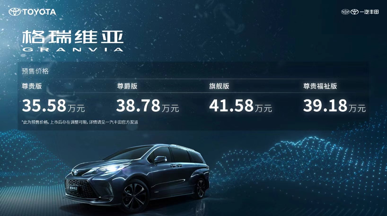 11月18日,一汽丰田全新MPV车型“格瑞维亚”正式开启预售,新车共推出4款车型,预售区间为35.58万-41.58万元。一汽丰田“格瑞维亚”是广汽丰田“赛那“的姊妹车型,作为对比,广汽丰田赛那售价区间为30.98-40.58万元。按照规划,新车将于12月16日正式上市,上市后将与别克GL8以及姊妹车型广汽丰田赛那形成竞争关系。一汽丰田“Granvia”于5月25日正式首发并确定中文名为“格瑞维亚...