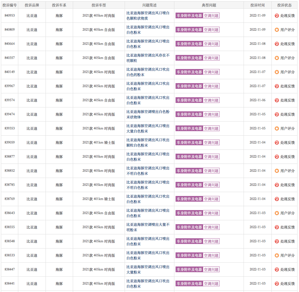 11月18日下午,针对“比亚迪海豚空调出风口喷白色颗粒状物质”事件,比亚迪在官方微博做出最新回应。比亚迪表示:“近期,我们收到个别用户投诉,反映海豚车辆空调有白色粉末吹出的现象。对此,我们高度重视,并展开充分的调查研究,委托两家第三方权威机构进行检测。现将相关情况说明如下:此现象是由海豚车型个别空调蒸发器异常引起。经检测,粉末的主要成分为氢氧化铝(常用于胃药),对身体无害。”在此次最新发布的回应中...