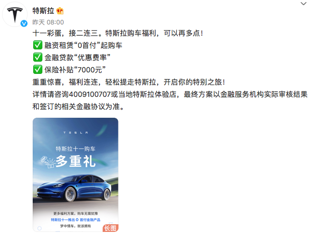 9月30日,网上曝出特斯拉国产车将大幅降价传闻,消息称,特斯拉国产车型Model3和ModelY将进行大幅降价,其中ModelY的降价幅度最高达4万元,最终ModelY后轮驱动版车型的起售价可能会降至27万-29万元。但没过多久,特斯拉方面就澄清这一消息是不实信息。针对国产车型将进行大幅降价的传闻,特斯拉作出回应表示:“该消息并不属实”。而在10月1日国庆节当天,特斯拉又举起“价格屠刀”。特斯拉在...