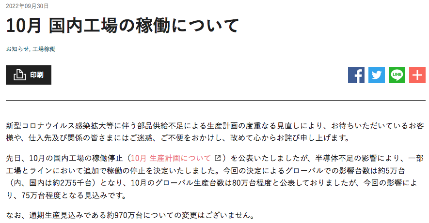 自疫情爆发以来,受全球供应链紧张、原材料以及物流成本上涨等外部因素影响,新车生产面临中断成为汽车行业的共同话题,尤其是日系车企受影响程度尤为明显。进入2022年后,丰田汽车、本田汽车、马自达、三菱汽车、斯巴鲁、日产汽车等车企均遭遇过停产或减产困扰。以丰田汽车为例,自今年3月以来,丰田汽车因上述因素影响频繁遭遇停工减产问题,其中6月份中丰田汽车曾前后三次工厂被迫减产,产能也由原初的95万削减剩75万...