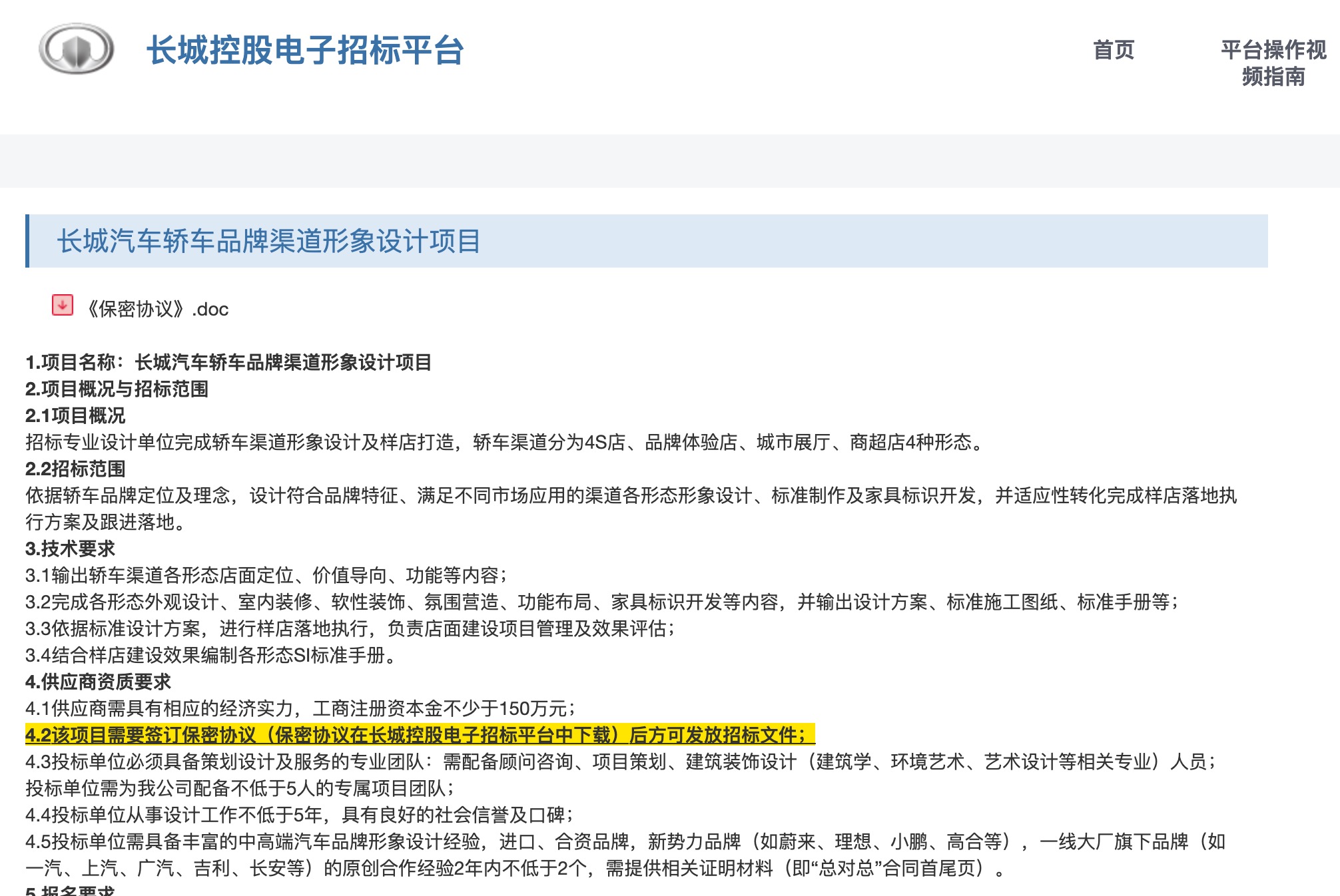 继哈弗、WEY、欧拉、长城皮卡、坦克和沙龙六个子品牌后,长城旗下或将迎来第七个子品牌。12月17日,据长城控股电子招标平台信息显示,长城汽车正在进行“长城汽车轿车品牌渠道形象设计项目”招标工作,由公告中的“轿车品牌”字眼来看,长城轿车业务将以单独的品牌形式运营,公告信息还显示,长城汽车的轿车品牌渠道分为新零售和传统零售两种模式,其中包括4S店、品牌体验店、城市展厅、商超店4种形态,不过,关于这个品...
