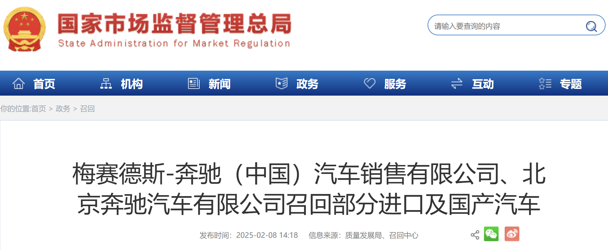 2月8日,国家市场监督管理总部发布最新召回公告。公告显示,梅赛德斯-奔驰(中国)汽车销售有限公司、北京奔驰汽车有限公司根据《缺陷汽车产品召回管理条例》、《缺陷汽车产品召回管理条例实施办法》和《机动车排放召回管理规定》的要求,向国家市场监督管理总局备案了召回计划,决定召回以下车辆。一、梅赛德斯-奔驰(中国)汽车销售有限公司自即日起,召回生产日期在2017年5月3日至2018年5月2日期间的部分进口S...