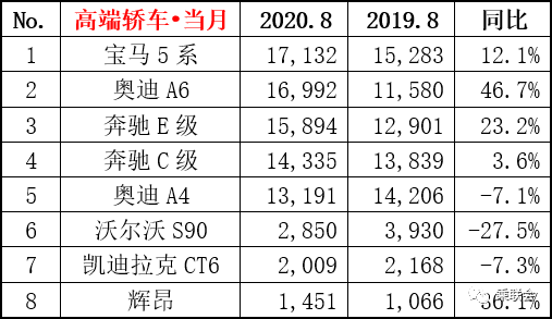 汽车行业关注(autochat.com.cn)09月11日报道——自进入2020年车市下滑叠加新冠疫情的影响,让车市遭遇前所未有的冲击。尽管如此,豪华市场在今年都一直保持强于乘用车市场的表现,受消费升级因素致市场销量及占比持续走高。据乘联会数据显示,8月乘用车市场在零售达到170.3万辆,同比去年8月增长8.9%,实现了自2018年5月以来的最强的正增长。在此环境下,8月豪华车零售同比增长32%,...