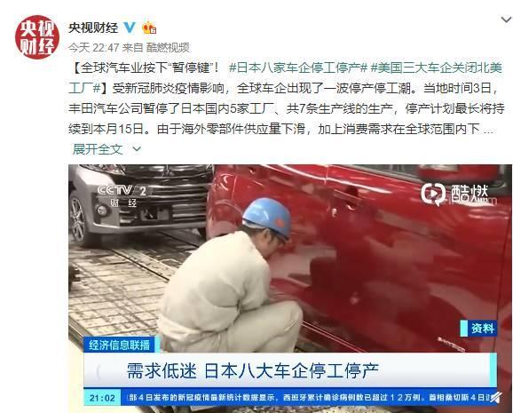 汽车行业关注(autochat.com.cn)04月06日报道——在全球各地遭遇突如其来的新冠肺炎打击下,世界各国车企似乎无疑幸免的遭到影响。据央视财经报道,此前已有部分车企宣布停产的日本国,再因疫情蔓延致海外零部件供应短缺,使得停产车企夸大至八家。 此前,因受新冠病毒肺炎疫情影响,海外需求骤减。丰田汽车公司已于4月3日对外宣布,既日起停止爱知县和福冈县等日本国内5家工厂的共7条生产线的...