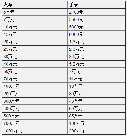 手表和汽车现在似乎都是代表一个人地位的东西,网上也有很多关于手表和汽车档次的对比,比如把劳力士类比奔驰在汽车中的地位,把百达翡丽类比宾利。但是否准确呢?今天就统计了一下不同价位的手表和汽车所在的档次。车和表品牌的对比原理:原理很简单,就是选择权威销售汽车和手表的网站,然后选择一个价位,按照月薪选表方式,对照汽车总价,但是往往在中段中产表迷选表预算总是定的比下图高一倍,这也是内陆表友对门面的重视程度...
