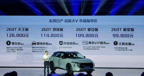 9月27日,东风日产启辰旗下全新车型启辰大V正式上市,新车共推出4款车型,售价区间为9.98-12.88万元。据了解,启辰大V是启辰品牌重新并入东风日产后推出的首款车型,也是东风日产启辰今年的重磅车型,定位紧凑型SUV。从外观来看,新车采用全新的V-Galaxy家族设计风格,与以往的启辰车型有很大的区别,大尺寸的前进气格栅占据了前脸大部分位置,格栅内部的形状也呼应启辰三角形的设计元素,同时与大V的...