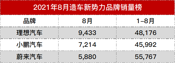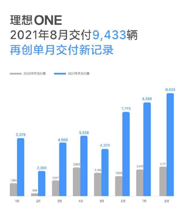 月销上万有望?9月1日,理想汽车率先公布新车交付数据,8月理想汽车共交付9,433辆理想ONE,2021年1-8月总交付量48,176辆。从单月数据来看,理想汽车交付量再创新纪录,首次交付超过9000辆,有望继续领先蔚来、小鹏等成为造车新势力销量第一品牌。从累计销量来看,理想汽车对比蔚来汽车仍有一定的距离,但是两家公司的差距正在不断减少,如果后续理想汽车能够维持增长,不排除理想汽车年内反超蔚来汽车...