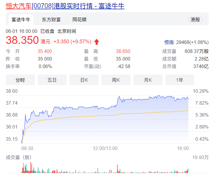 截止6月1日港股收盘,恒大汽车股价报涨9.57%,报收38.35港元/股,总市值为3746亿港元。截止目前,恒大汽车市值位居国内第四,被比亚迪、蔚来汽车、长城汽车赶超。值得一提的是,就在昨天,恒大恒驰智能科技(上海)有限公司成立,注册资本1亿人民币,法定代表人为刘永灼,经营范围包括从事智能科技、汽车科技、网络科技、计算机科技领域内的技术开发、技术转让、技术咨询、技术服务等。通过股权穿透图显示,该公...