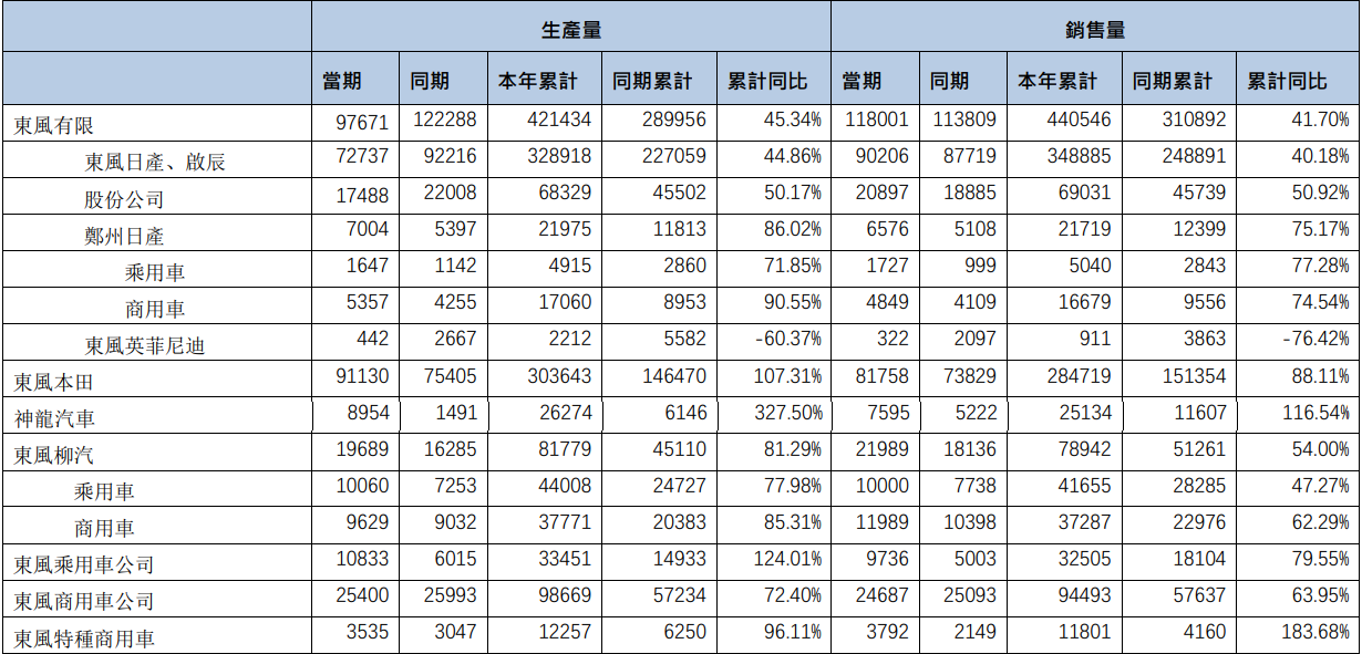 5月6日,东风汽车集团公布最新销量数据显示,4月汽车销量为268473辆,1-4月累计销量为971233辆。其中,4月乘用车销量为201363辆,1-4月累计销量为739043辆。具体品牌来看,东风日产和东风本田依旧是东风汽车集团的主要销量来源,两大品牌占乘用车总销量75%。东风日产(含启辰)4月份销量为90206辆,1-4月累计销量为348885辆,主销车型主要有轩逸、天籁、逍客、奇骏。今年也是...