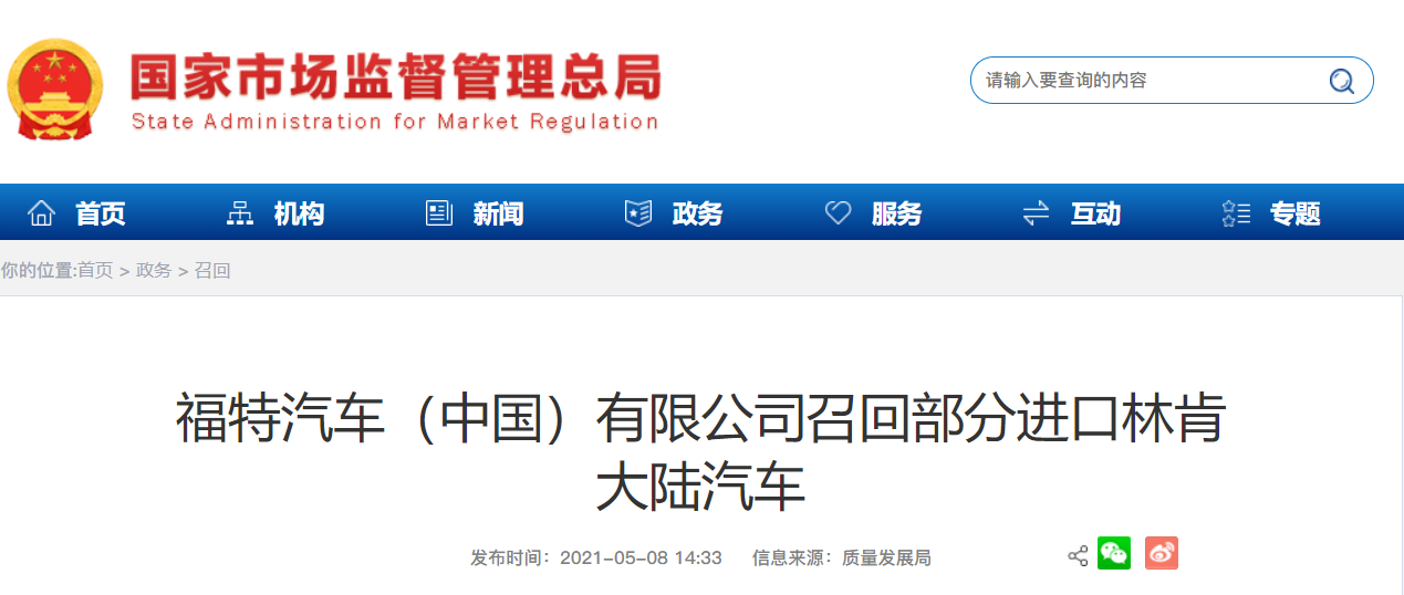 据国家市场监督管理总局官网发布,日前福特汽车(中国)有限公司向国家市场监督管理总局备案了召回计划,决定从2021年5月14日起,召回2016年6月24日至2019年9月20日生产的部分2017-2018年款进口林肯大陆汽车,共计24664台。召回原因是召回范围内车辆发动机和变速箱的主动式固定支架可能发生液体渗漏,可能造成发动机控制模块(PCM)连接器针脚被腐蚀,从而导致车辆无法启动、不能熄火、充电...