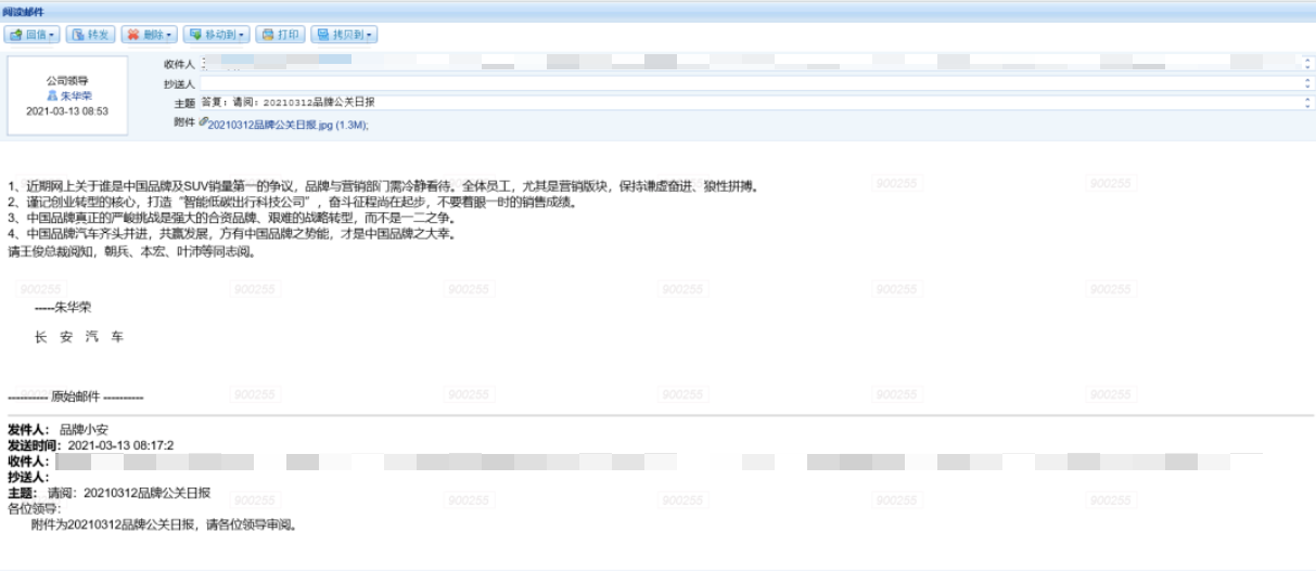 3月13日,长安汽车董事长朱华荣向公司高管发送了一份邮件,邮件的内容不长,仅有短短的四句话:1、近期网上关于谁是中国品牌及SUV销量第一的争议,品牌与营销部门需冷静看待,全体员工,尤其是营销版块,保持谦虚奋进、狼性拼搏。2、谨记创业转型的核心,打造“智能低碳出行科技公司”,奋斗征程尚在起步,不要着眼一时的销售成绩。3、中国品牌真正的严峻挑战是强大的合资品牌、艰难的战略转型,而不是一二之争。4、中国...