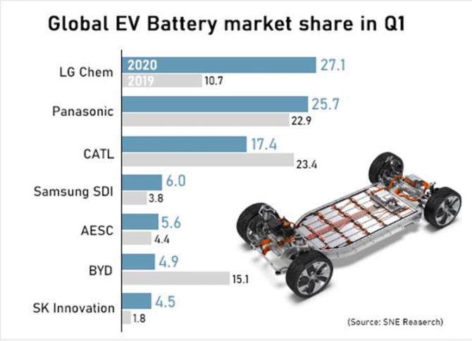 根据市场调研机构SNEResearch最新报告显示,今年一季度,韩国LG化学动力电池市场份额超越日本松下和中国宁德时代,成为2020年一季度全球最大电动汽车电池供应商。数据显示,LG化学一季度市场份额为27.1%,一季度动力电池装机量为5.5Gwh,较去年同期为的2.5Gwh增长120%。该机构指出,LG化学装机量的增长主要源于特斯拉国产Model3、雷诺ZOE以及奥迪e-tron等电动车的强劲表...