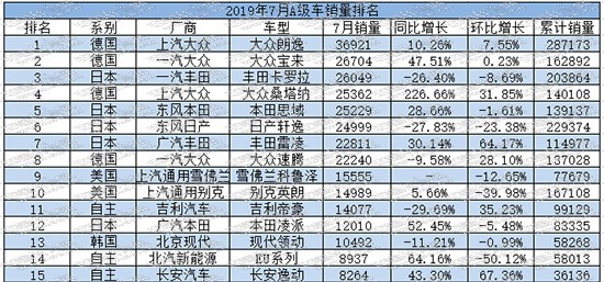 在当前车市下行的环境下,由于国六的切换以及新能源补贴退坡,7月汽车市场再次下行。据数据显示,7月A级车累计销量48.23万辆,同比下滑4.85%。从销量排名前十来看,7月大众汽车共有三款车型上榜,分别是朗逸、宝来、桑塔纳和速腾;日系车同样有四款车型上榜,分别是丰田卡罗拉、本田思域、日产轩逸和丰田雷凌;此外的两个名额均为美系品牌,分别是雪佛兰科鲁泽和别克英朗。从具体车型来看,大众朗逸以强劲的实力蝉联...