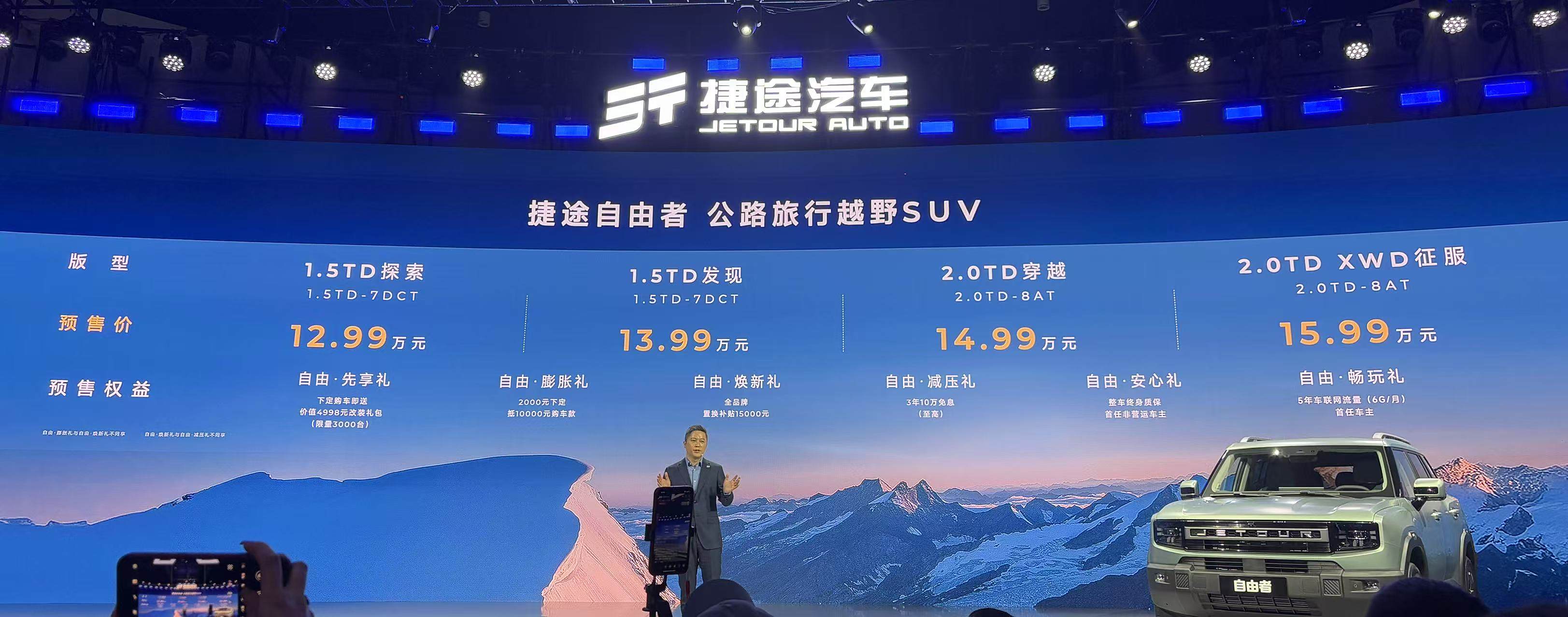 2月14日,捷途品牌旗下紧凑型SUV——捷途自由者正式开启预售,新车共推出4款配置,预售价区间为12.99-15.99万元。新车可视作为山海T1的燃油版车型,其将提供1.5T以及2.0T两种动力。外观方面,该车整体延续山海T1的方盒子造型,并针对格栅细节进行调整,增加“JETOUR”品牌英文标识并在边缘加入枪灰色镀铬饰条进行点缀,搭配下方黑色前保险杠,整体营造出不错的硬派气息。前大灯组造型十分独特...