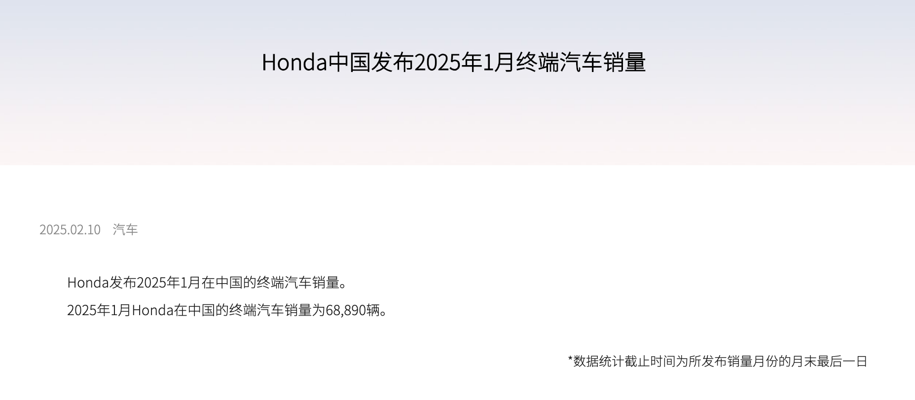 2月10日,本田中国发布最新销量报告显示,2025年1月本田中国终端汽车销量为68,890辆,而2024年同期销量为100,960辆,同比跌幅31.8%。本田中国销量下滑的原因,主要还是因为春节假期的影响,蛇年春节在1月底到2月初,春节假期导致有效销售时间缩短是销量下滑的一个重要原因,全月的工作日只有17天。工作日的减少使得消费者看车、购车的时间相应减少,影响汽车销售。此外,节前购车需求提前释放也...