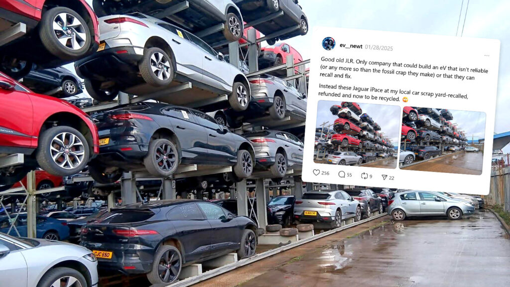 据外媒Carscoops报道,海外网友Ev_Newt在英国的一个废品场拍摄到显示至少有几十辆捷豹I-Pace在一个看起来非常阴暗的汽车墓地中并排堆放,而这些车辆停放在此的原因,与自身的电池安全有关,该车型多次因为电池问题可能导致车辆起火,该媒体猜测捷豹可能基于捷豹I-Pace的产品问题进行批量报废。报道称,自2023年5月以来,捷豹I-Pace已被召回过五次,原因是这些车是由韩国LG提供的动力电池...