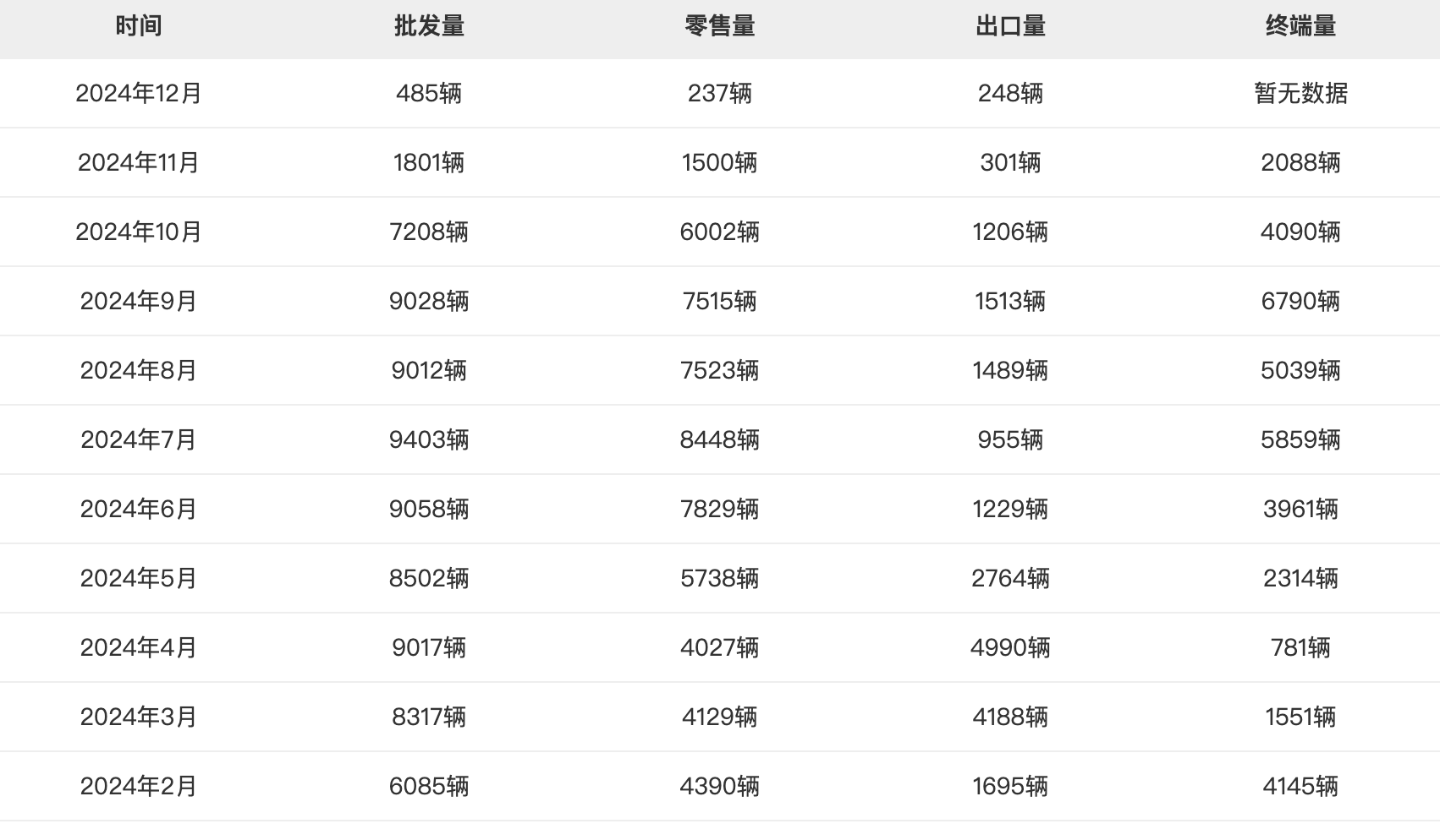 根据乘联分会公布的数据,12月哪吒汽车国内零售销量为237辆,同比下滑88.89%,环比下滑84.20%,此外出口248辆。237辆是什么样的水平?从历史数据来看,这是哪吒汽车上市销售以来已有销量数据的第二低水平,最低销量出现在2020年2月,月销量仅有102辆,当时是因为新冠疫情的爆发导致全国多地封城,而如今哪吒汽车所面临处境的原因,是自身企业经营出现了重大危机。从全年销量来看,哪吒汽车在202...