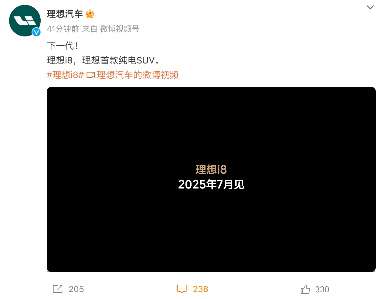 3月3日,理想汽车官宣,旗下首款纯电SUV——理想i8将于7月正式发布。此前,理想汽车已经发布理想i8多角度官图。据了解,理想i8是理想汽车旗下首款纯电SUV,定位纯电中大型六座SUV,预计售价在35万元以上甚至更高。根据官图来看,i8尺寸略大于ModelX,但相比ModelX更偏性能的定位取向,i8的产品定位将更偏向家用。从官方发布的官图来看,理想i8采用与目前在售理想增程SUV不同的设计语言,...