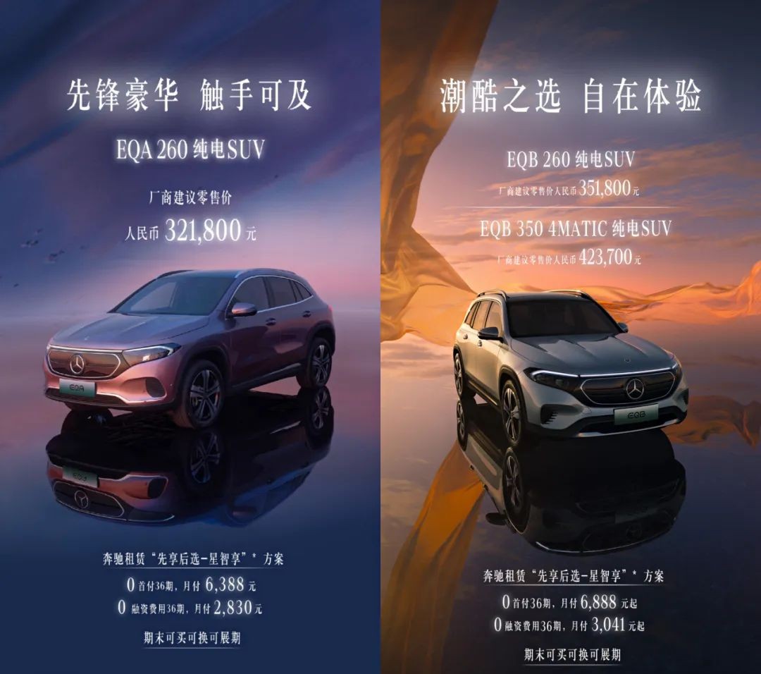 今日,梅赛德斯-奔驰宣布旗下EQ品牌2022款EQA及EQB两款纯电SUV正式上市,两款车型售价有所调整,不过新款EQA、EQB入门版取消了AMG外观运动套件。具体来看,新款EQA仅推出一款单电机车型EQA260,车辆售价为32.18万元,相比老款双电机车型价格下调了4.4万元;新款EQB共推出两款车型,分别为EQB260及2022款EQB3504MATIC,其中EQB260属于新增车型,售价为3...