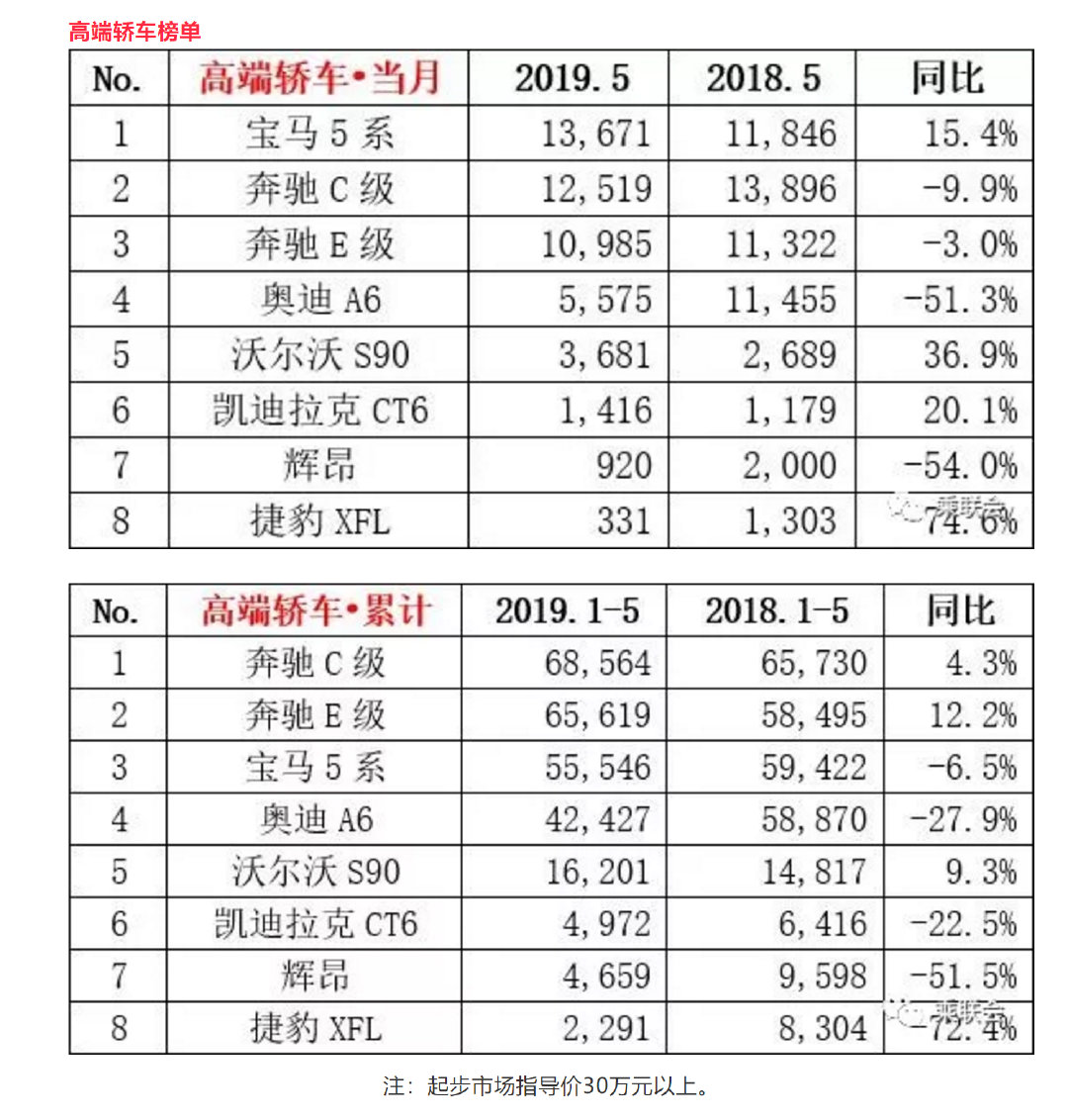 近日,高端豪华轿车5月份的市场销量情况新鲜出炉,宝马5系成功逆袭奔驰夺冠,奔驰的C级、E级分别排第二与第三位!据乘联会对外发布的数据显示,5月份豪华轿车的总销量为158.2万辆,同比下降了12.5%。其中,在奔驰E级的质量危机、奥迪A6整体的竞争力下降的大环境下,宝马5系成功上位。5月份销量总共13671辆,与上一年5月相比增长了15.4%。今年的前4个月,奔驰E级的销量一直都是压着5系,但是由于...