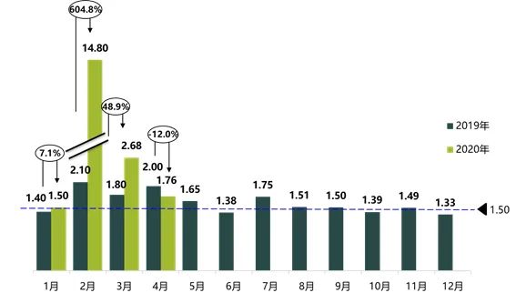 汽车行业关注(autochat.com.cn)05月10日报道——随着国内疫情逐渐得到控制,中国汽车市场终于迎来微小的“反弹”迹象。今日,中国汽车流通协会发布了一份2020年4月“汽车经销商库存”调查报告,结果显示,4月经销商库存实现明显的缩小至1.76。 协会报告称,4月份汽车经销商综合库存系数为1.76,明显低于受疫情影响后的2月和3月市场,但高于今年1月的市场,同比下降12.0%,...