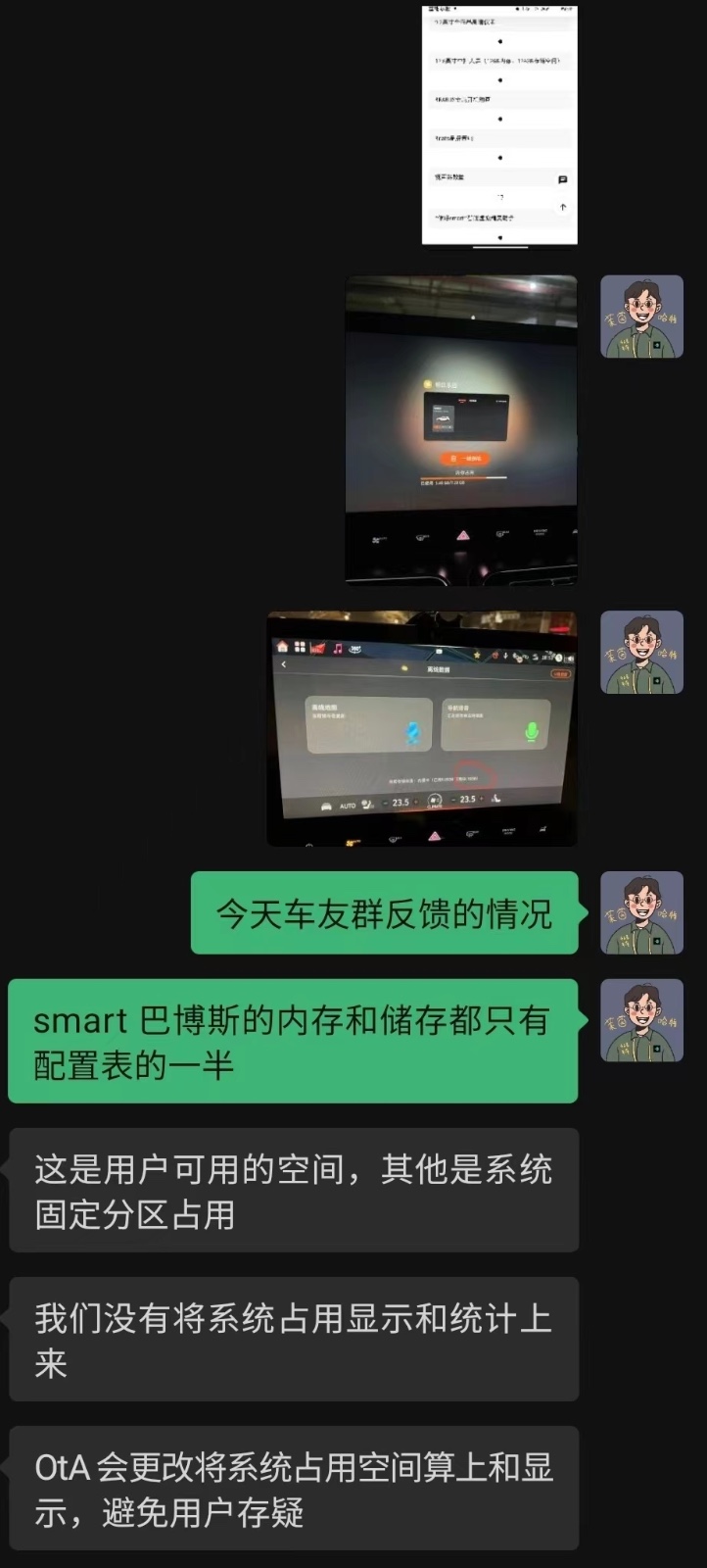 据汽车博主称,近日有smart精灵#1车主称,smart车机系统内显示的内存(7.28 G)和储存(60.1 G)都只有配置表上数据(12+128)的一半左右,疑似减配。