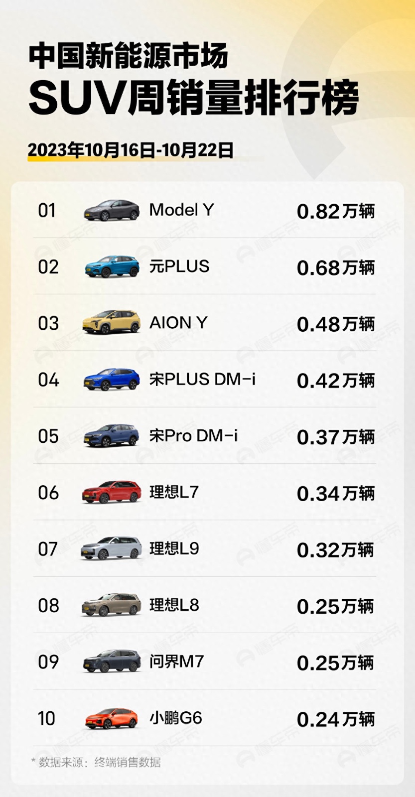 10月16日至10月22日最新一周新能源汽车品牌销量出炉。