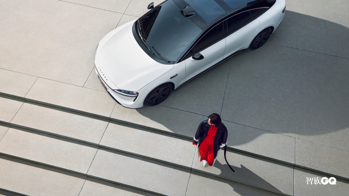 车身侧面,新车提供双色车身涂装,采用下白上黑配色,而溜背式车顶设计使整车在视觉效果上呈现出轿跑风格。尺寸方面,新车长宽高分别为4971/1963/1477mm,轴距为2930mm,定位纯电中大型轿跑车。作为对比,比亚迪汉EV长宽高分别为4995/1910/1495mm,轴距为2920mm。