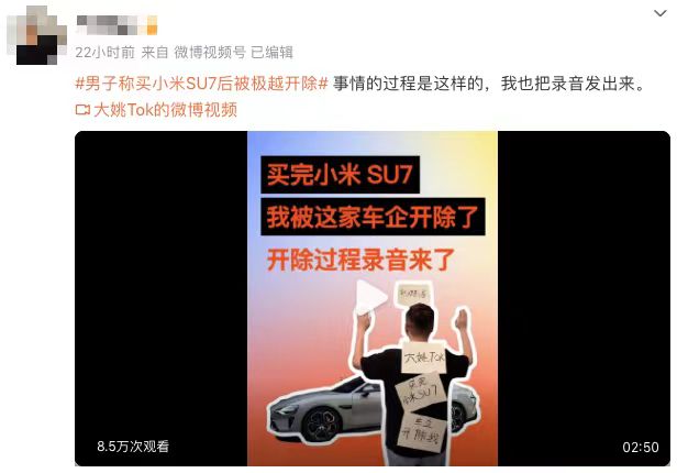 对此,该员工表示不理解,并解释:“我只是想买一台自己喜欢的车,我觉得我掉入了职场陷阱。”随后“小米SU7车主买车5天后被极越开除”一事在网上引发热议。