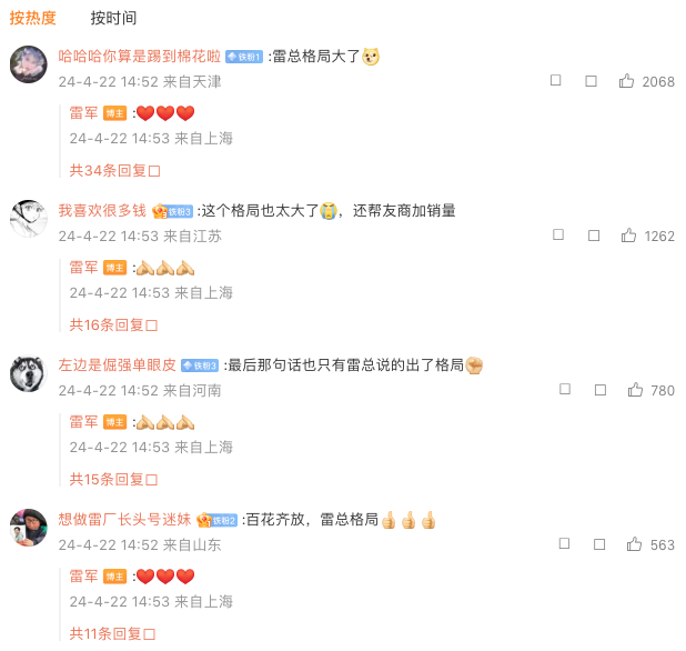 雷军微博发布后,#雷军 格局#、#雷军称着急购车可考虑智界S7#话题冲上微博热搜,不少网友表示“雷军格局大了”、“格局拉满”。随后,智界汽车也转发了雷军的微博并表示:“感谢雷总推荐#智界S7#!”同时还不忘附上:“智界S7超大空间、华为智驾、鸿蒙座舱,现已开启规模交付,欢迎广大消费者到店体验!”