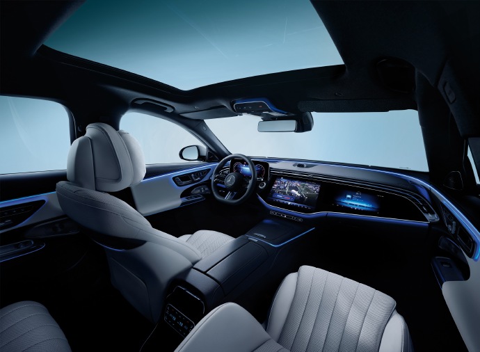 内饰部分,新车配备全液晶仪表和大尺寸全新MBUX超级屏MBUX Superscreen,结合三辐式多功能方向盘等设计营造出不错的科技感。