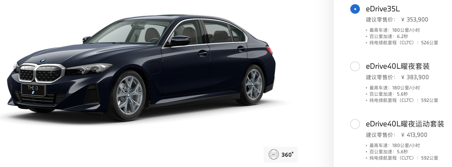 宝马官网显示,目前现款宝马i3共有eDrive 35 L、改款eDrive 40 L 曜夜套装、改款eDrive 40 L 曜夜运动套装3款车型选择,售价区间为35.39万-41.39万元;宝马i5共有4款车型选择,售价区间43.99万-46.59万元。