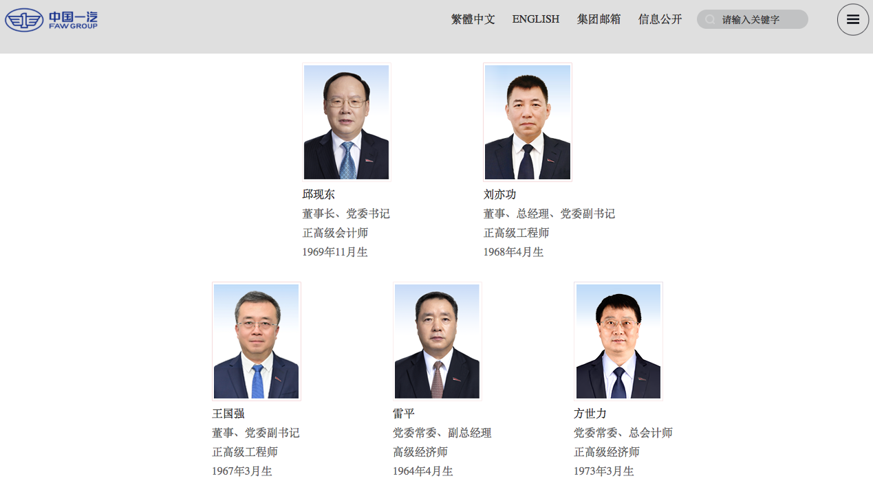 目前吴碧磊的职务已在一汽集团官网上更新。至此,一汽集团领导成员由邱现东、刘亦功、王国强、雷平、方世力、梁贵友和吴碧磊,共七名成员组成。其中,方世力和吴碧磊均为70后。