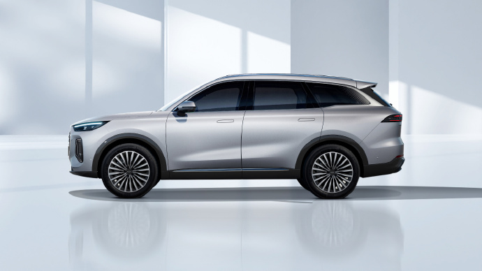 车身侧面,新车线条较为流畅,笔直的腰线从车头贯穿至车尾,车顶营造出悬浮效果,看上去较为硬朗。另外,新车还采用隐藏式门把手设计,并配备全景天窗、大尺寸多辐轮辋、车顶行李架等,提供18英寸、19英寸和20英寸轮辋选择。尺寸方面,新车长宽高分别为4795/1930/1725(1737)mm,轴距为2770mm,定位中型SUV,座椅采用5座版和7座版本两种版本布局。作为参考,瑞虎8长宽高分别为4700/1860/1746mm,轴距为2710mm。