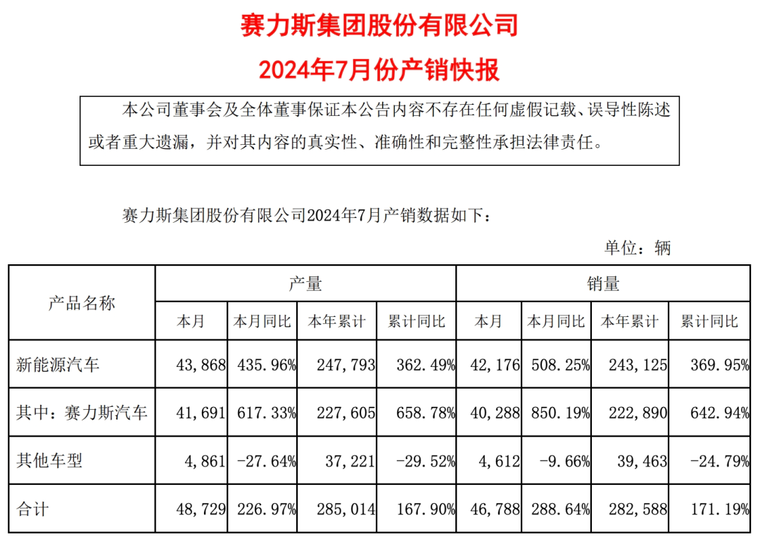 作为理想汽车的主要竞争对手,赛力斯最新发布公告,其7月销量为41691辆,同比增长617.33%,1-7月累计销量227,605辆,同比增长658.78%。目前,赛力斯旗下问界品牌在售车型包括新M5、新M7、M9,年内将推出M8。由于问界销量大涨,赛力斯预计上半年预盈,净利润为13.9亿元到17亿元,实现扭亏为盈。