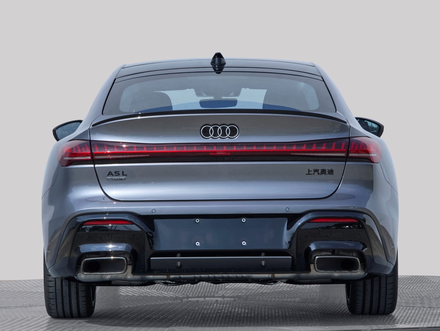 车身侧面是上汽奥迪A5L与一汽奥迪A5L存在差异的位置,上汽奥迪A5L延续海外版A5溜背式车顶造型,车顶弧线一直延伸至接近尾厢盖边缘的位置。另外,上汽奥迪A5L还配备无框式车门以及内嵌式藏式门把手。申报信息显示,上汽奥迪全新A5L的长宽高分别为4903/1883/1447mm,轴距为2922mm,相比海外版车型有所加长。车尾部分,新车配备贯穿式LED尾灯以及四边形双出式排气筒等设计细节,底部则是运动感十足的尾部扩散器设计。