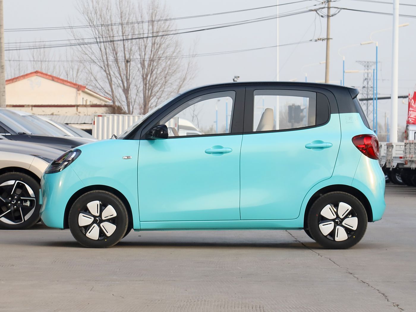 车身侧面,新车整体轮廓和腰线变得更加圆润,最大的亮点是采用四门设计,把手则为传统造型的车门造型设计。另外,新车轮辋盖板采用全新的双色设计,双色环形轮圈配备黑色外后视镜壳让人印象深刻。车身颜色方面,新车提供膨膨蓝、泡泡绿、甜甜咖三种颜色选择。尺寸方面,新车长宽高分别为3256/1510/1578mm,轴距为2190mm。作为对比,相比于2024款两门车型,新车在长度、宽度以及轴距方面均有所增加。车尾部分,新车尾部造型较为简洁,尾灯造型与前脸相互呼应。有所变化的是,新车取消了现款车型连接尾灯的饰条并将“WULING”英文标识更换为品牌车标,同时,新车高位刹车灯位置移动到后风挡上沿,尾门开口也变得更大,取放物品更加方便。